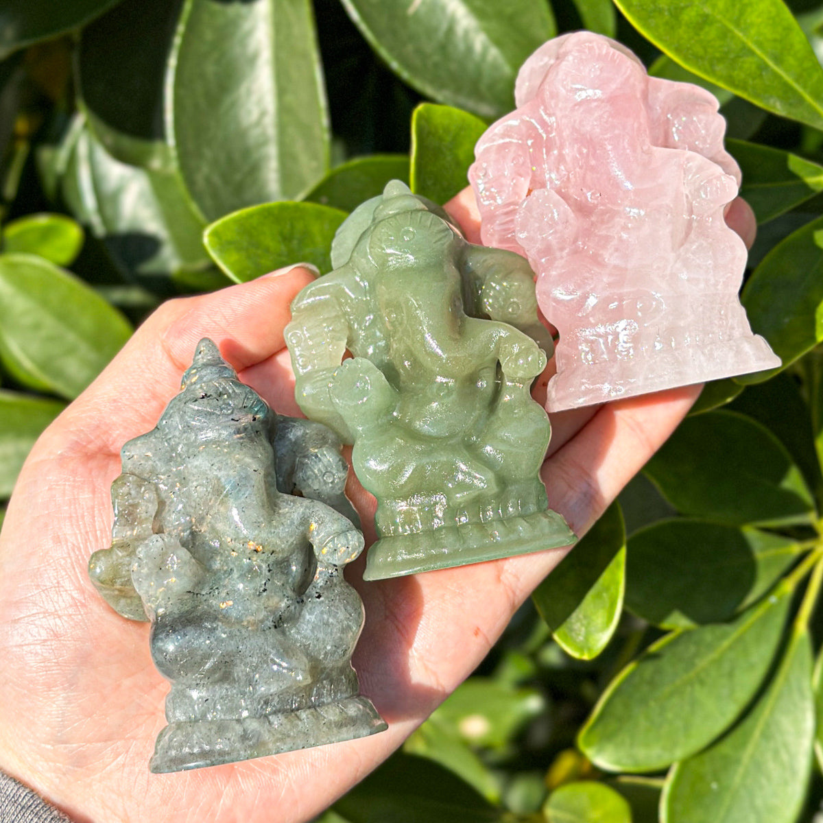 Various Materials: Includes Ganesha figurines crafted from a variety of natural stones, each with a unique energy and beauty.