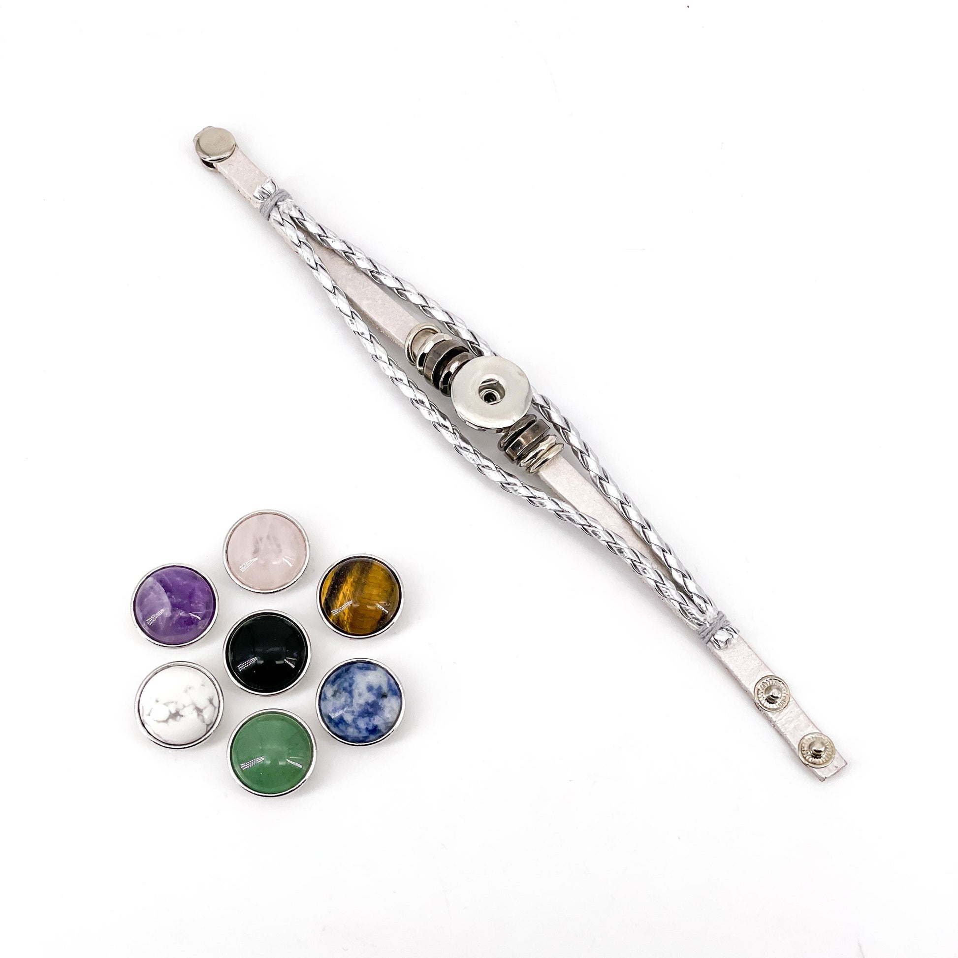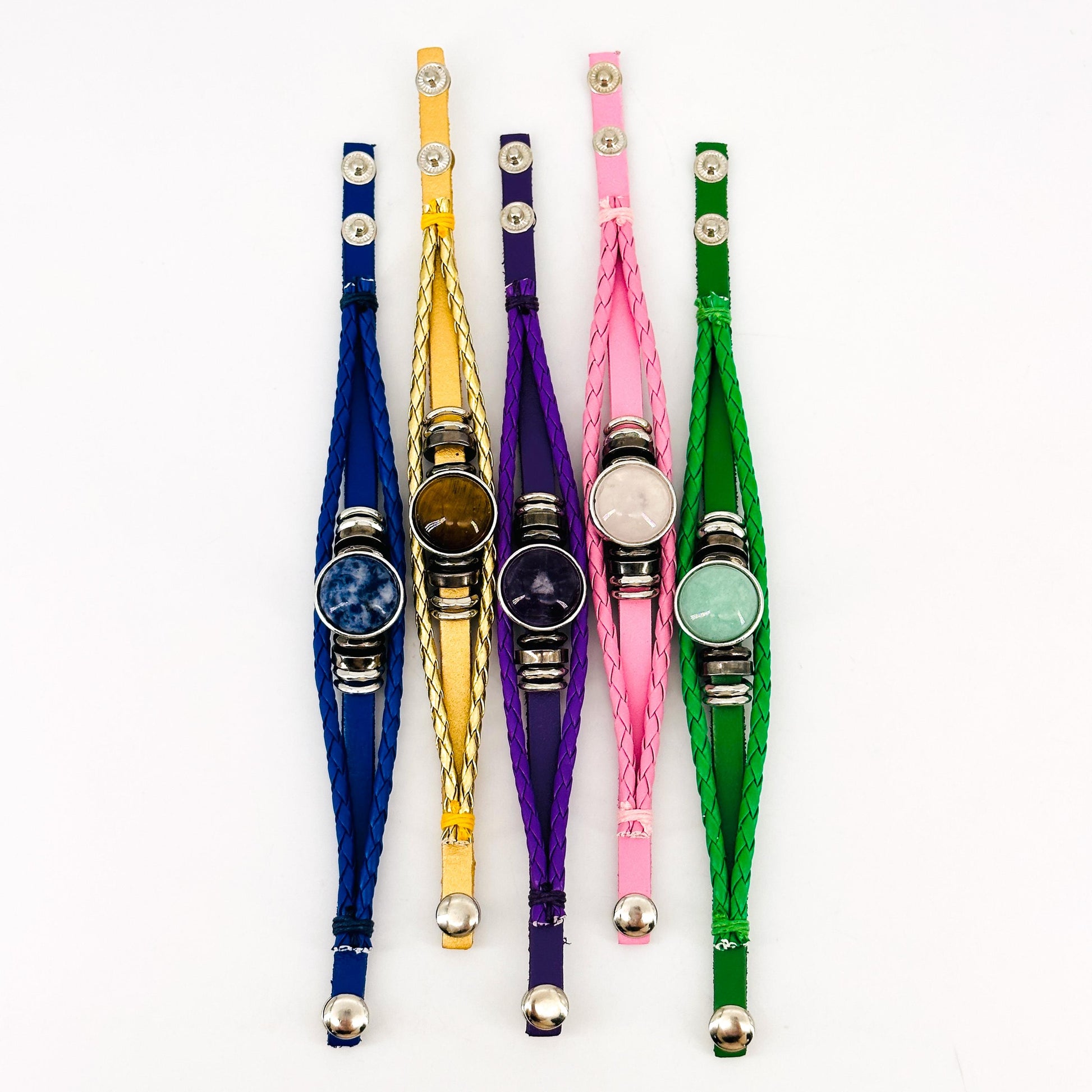 Chakra woven bracelet,Crystal button bracelet,interchangeable crystal bracelet