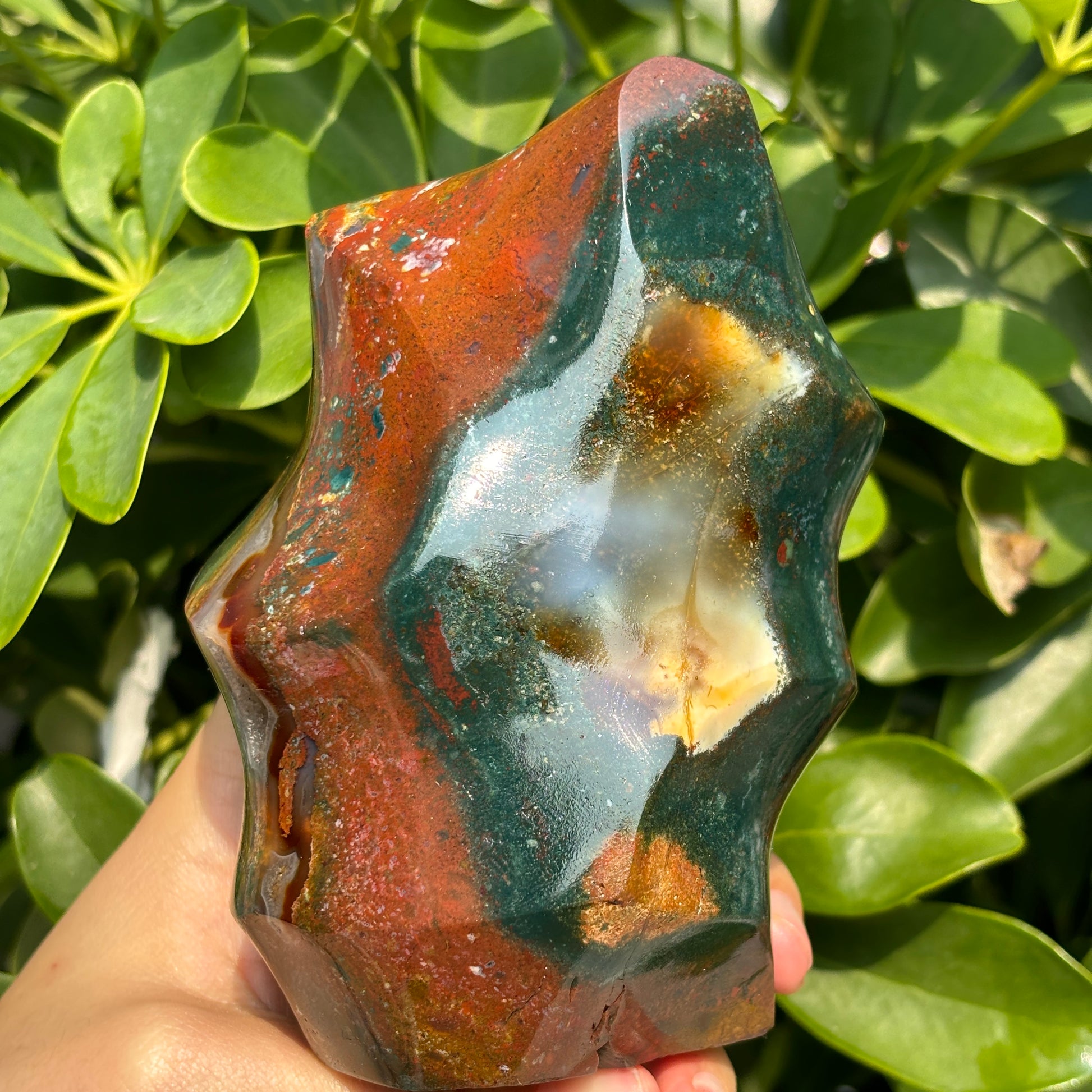 "Hand-Polished Multi-Color Jasper Sculpture | Unique Natural Crystal Display"