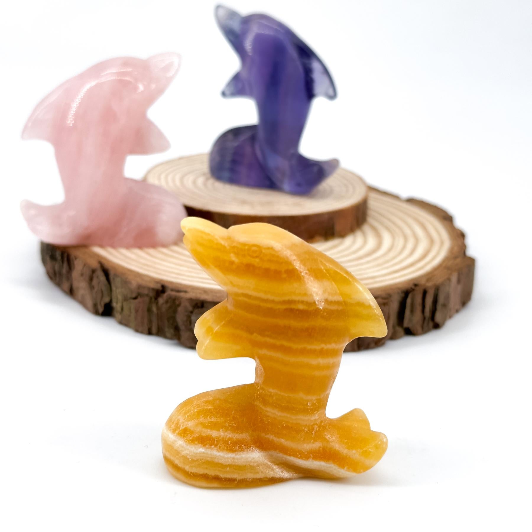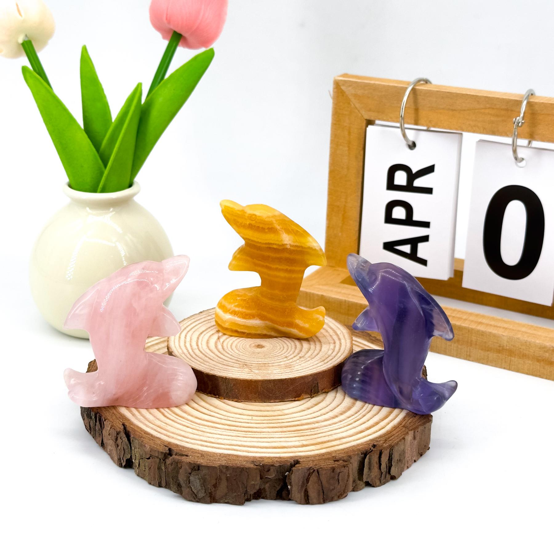 Natural Crystal Dolphin Carving, creative cute little dolphin ornament, marine life animal decoration, animal carving crystal gift