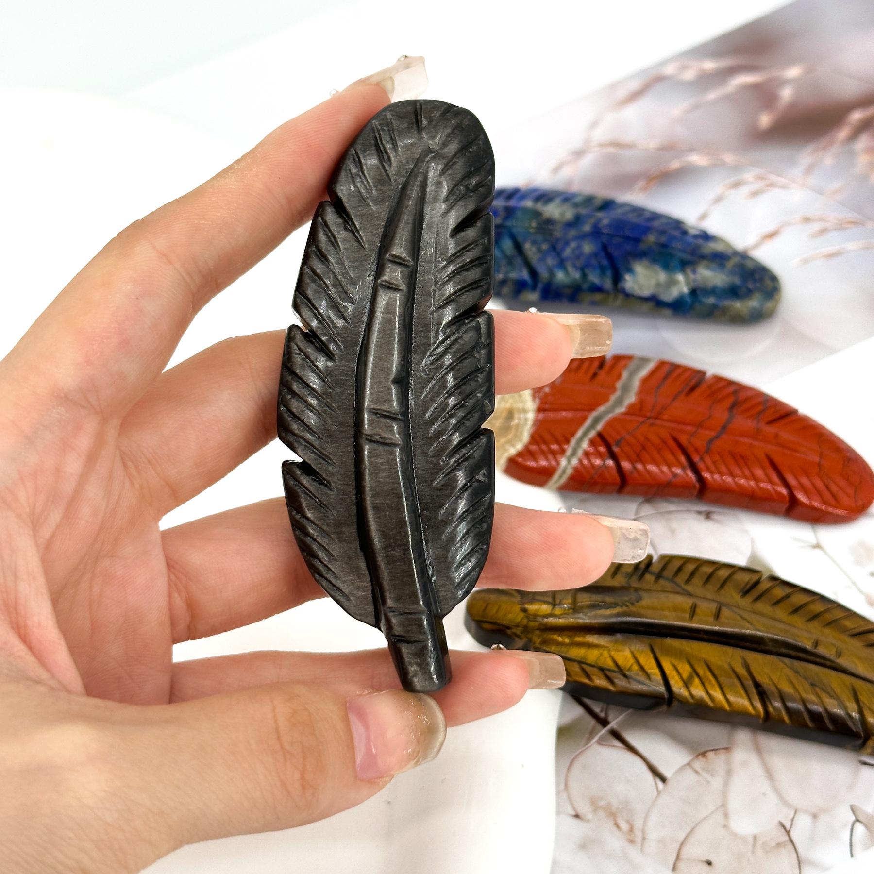 Natural Crystal Feather Carving, home decoration, mini carving ornament, creative gift